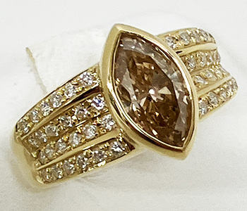 1.891ctのブラウンダイアに、K18イエローゴールドの枠が引き立つデザイン