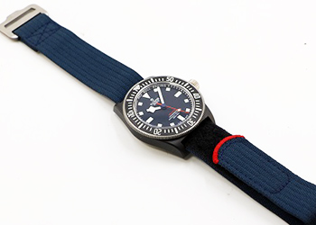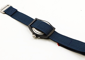 200mの防水性能を備え、実用性と信頼性を兼ね備えたダイバーズウォッチです。 ファブリック製ストラップは、手首にしっかりとフィットし、長時間の着用でも 快適な装着感を提供いたします。