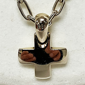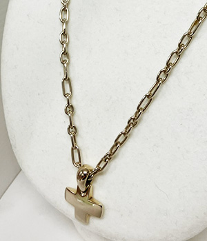 太目のチェーンと丸みの帯びたホワイトゴールドのトップが豪華でシンプルながらも存在感のあるクロスネックレス