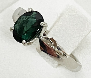トルマリンは10月の誕生石で、 赤、オレンジ、イエロー、緑、青、藍、紫…宝石の中で一番多彩な色を持つと言われています。 和名では「電気石」とも呼ばれ、摩擦や熱を加えることによって電気を生じる性質です。 電気を帯びたトルマリンは小さな紙片やほこりなど金属以外のものを引きつける性質も持ちます。 深すぎず艶やかすぎない、グリーントルマリンのリング。 グリーントルマリンは、存在感のある1.21ctのオーバルカット