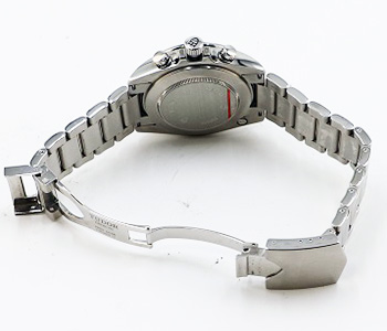 3カウンター表示のクロノグラフに、4時位置にインジケーター風のデイト表示を配置しています。