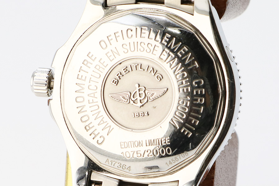 ブライトリング スーパーオーシャン42 A17364 黒文字盤 オレンジリング 裏面拡大