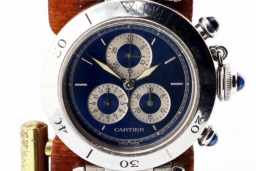 カルティエ パシャC クロノリフレックス 1352-1 青文字盤 表面拡大