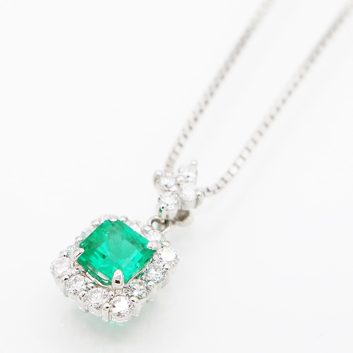 K18WG/PT900 エメラルドダイアイリペンダントネックレス 0.95ct 0.66ct 6.40g