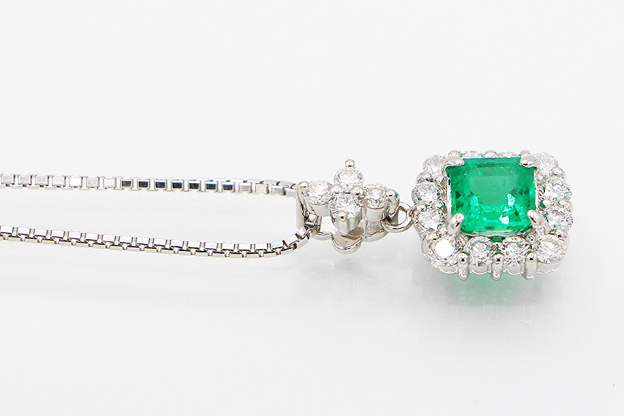 K18WG/PT900 エメラルドダイアイリペンダントネックレス 0.95ct 0.66ct 6.40g サイド