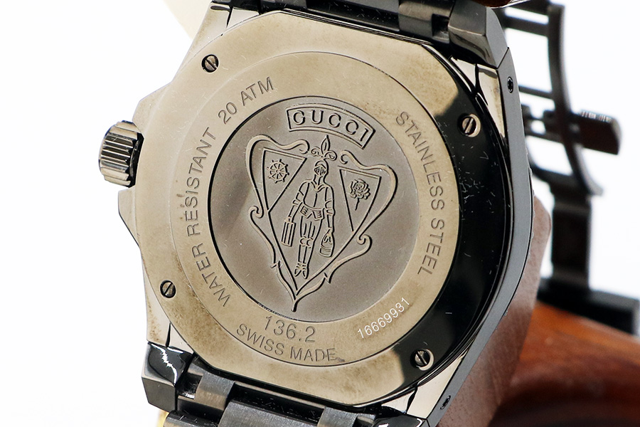 グッチ ダイブ200m 136.2 黒文字盤 裏面拡大