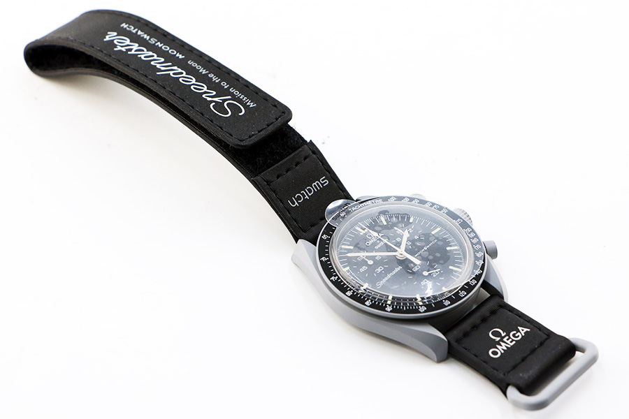 スウォッチ*オメガコラボ スピードマスター ミッションtoムーン S033M100 黒文字盤 ナイロンベルト状態 表面