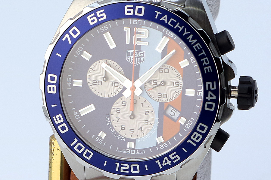 タグホイヤー フォーミュラー1 クロノグラフ CAZ101N 青ストライプ文字盤 表面拡大