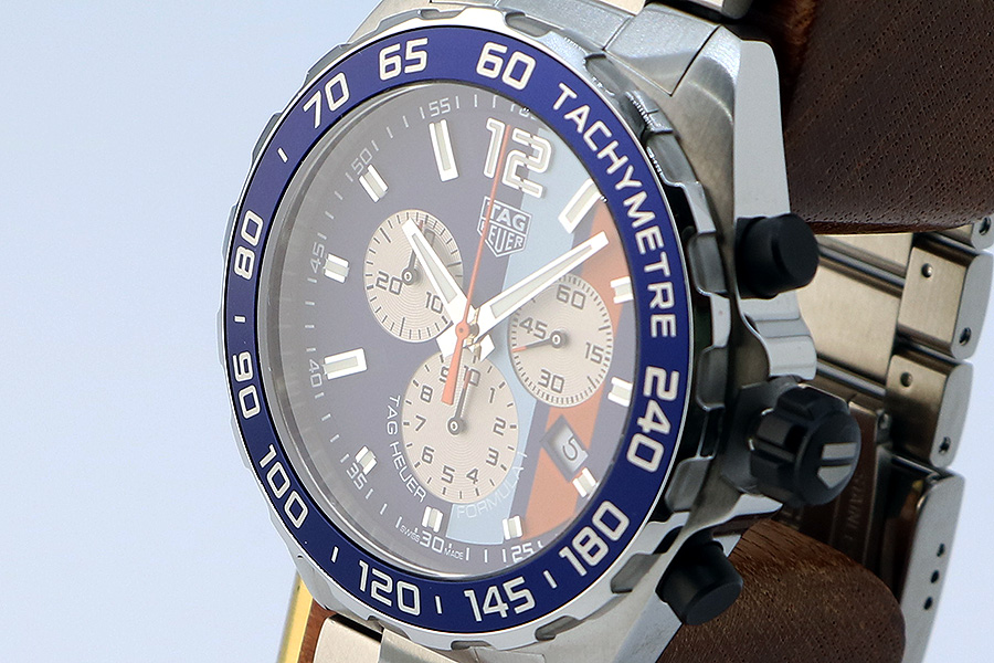 タグホイヤー フォーミュラー1 クロノグラフ CAZ101N 青ストライプ文字盤 サイド拡大