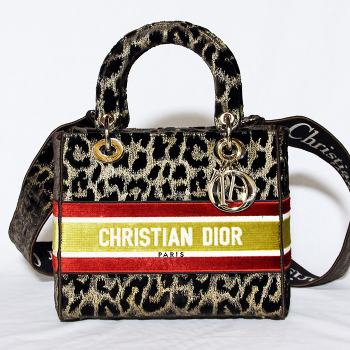 クリスチャンディオール レディディーライト ミディアム レオパード柄 ブラウン/レッド/イエロー