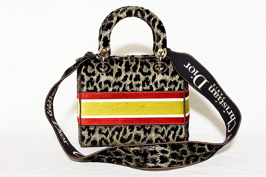 クリスチャンディオール レディディーライト ミディアム レオパード柄 ブラウン/レッド/イエロー