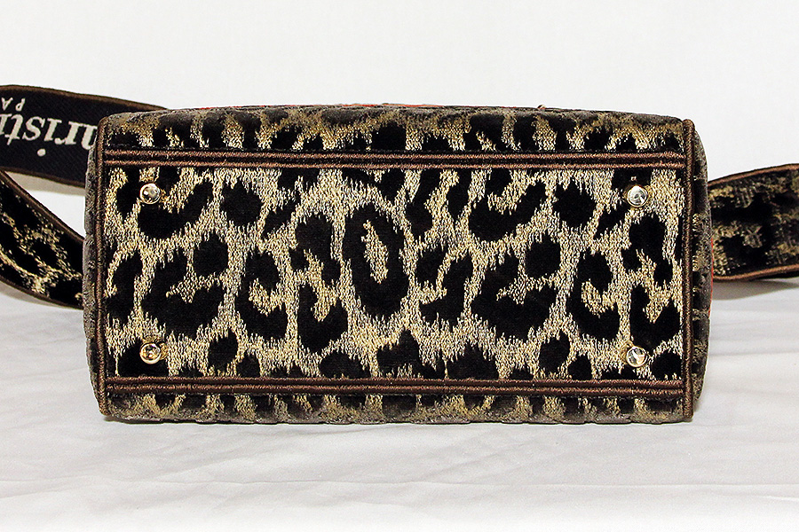 クリスチャンディオール レディディーライト ミディアム レオパード柄 ブラウン/レッド/イエロー 底