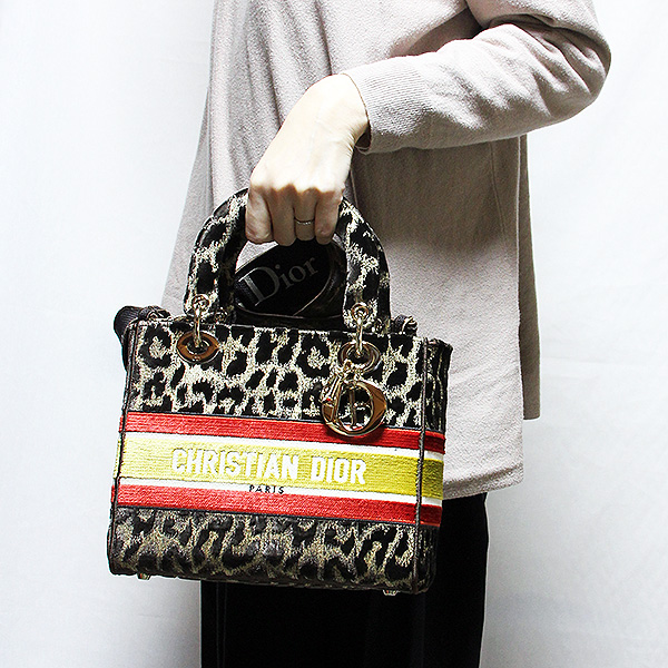 クリスチャンディオール レディディーライト ミディアム レオパード柄 ブラウン/レッド/イエロー 持ったイメージ