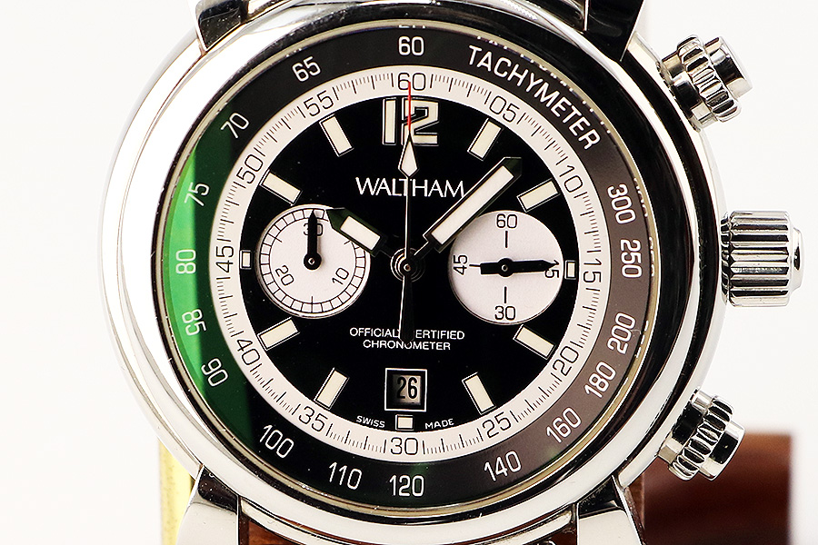 ウォルサム フィダルゴ クロノグラフ 黒文字盤 白リング 表面拡大