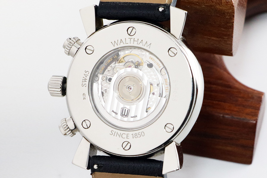 ウォルサム フィダルゴ クロノグラフ 黒文字盤 白リング 裏面拡大