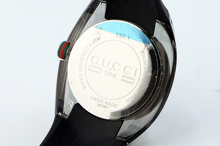グッチ SYNC(シンク) YA137.1 銀文字盤 裏面拡大