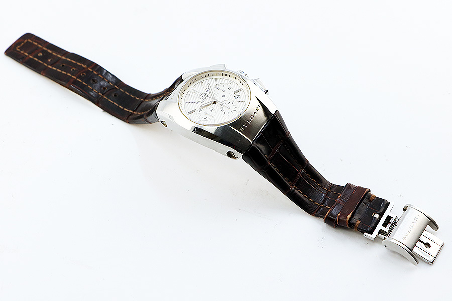 ブルガリ エルゴン クロノグラフ EG35SCH 銀文字盤 革ベルト状態 表面