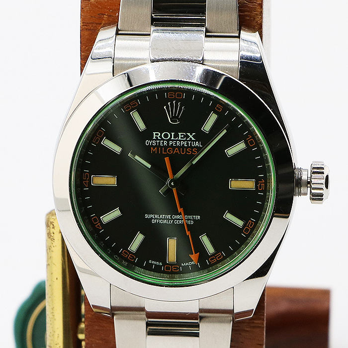ロレックス 116400GV ミルガウス 黒文字盤 グリーンガラス