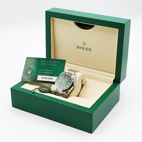 ロレックス 116400GV ミルガウス 黒文字盤 グリーンガラス 箱