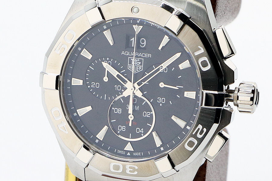 タグホイヤー アクアレーサー クロノグラフ CAY1110 黒文字盤 表面拡大