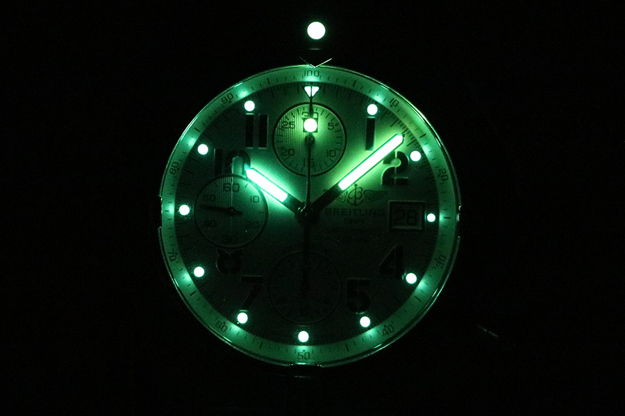 ブライトリング アベンジャー スカイランド A13380 銀文字盤 ライト暗闇