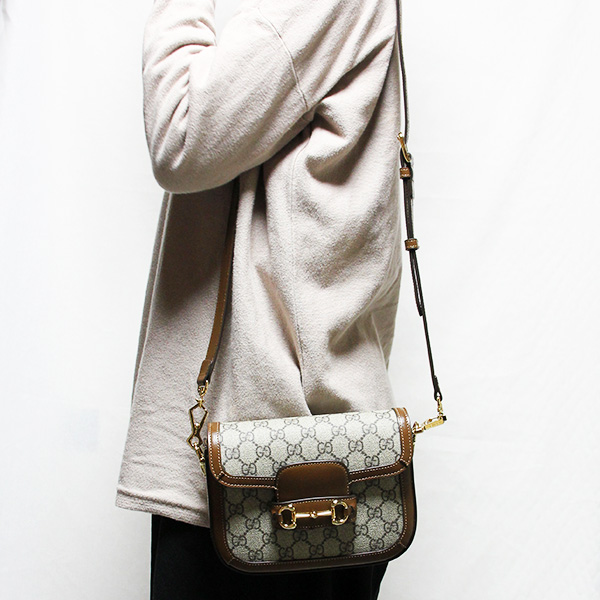 グッチ ホースビット1955 ミニショルダーバック 658574 403075 ベージュ 掛けたイメージ(1)