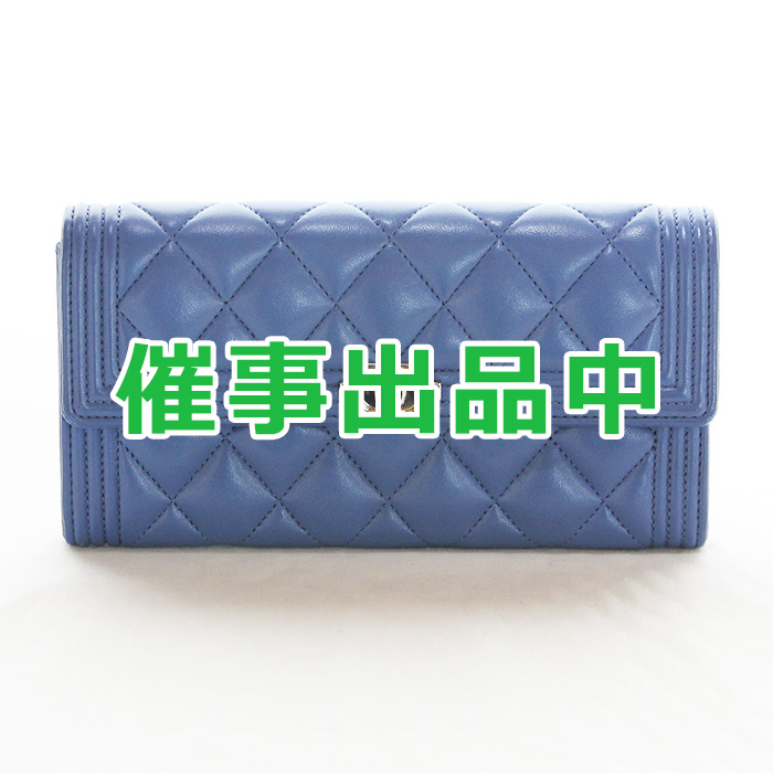 シャネル ボーイシャネル ニツ折長財布 A80286 ブルー