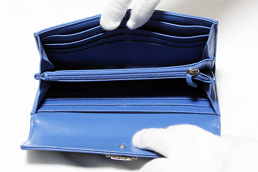 シャネル ボーイシャネル ニツ折長財布 A80286 ブルー 中身