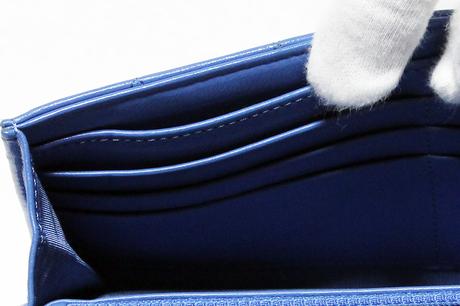 シャネル ボーイシャネル ニツ折長財布 A80286 ブルー カード入れ