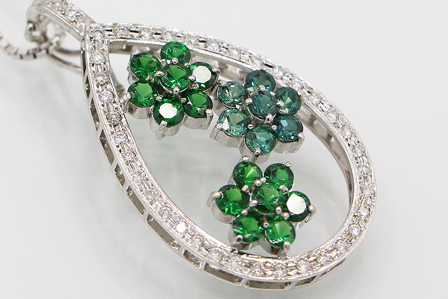 K18WG アレキサンドライトガーネットダイアイリペンダントネックレス 0.94ct 1.60ct 0.38ct 14.20g