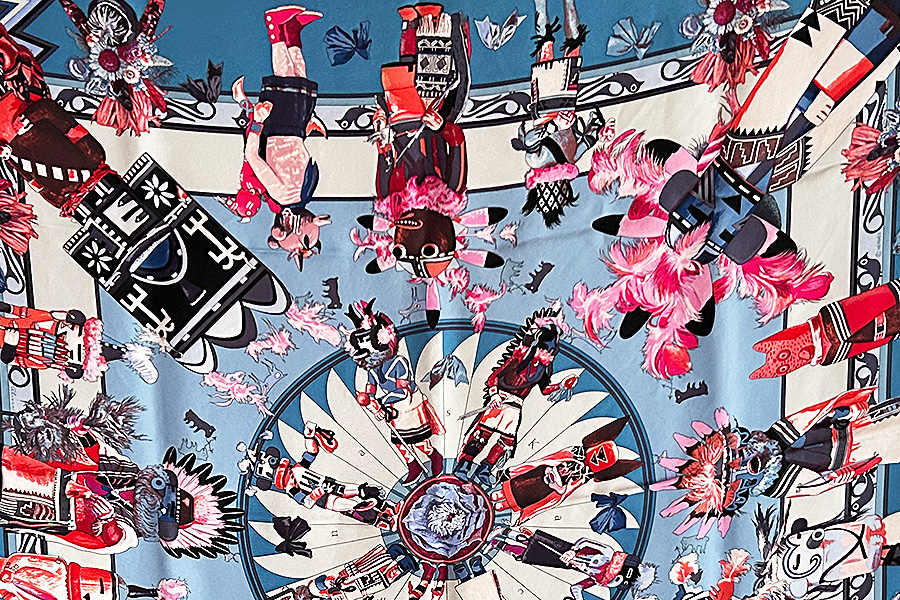 エルメス KACHINAS カレ ウォッシュ90 071823S RD/BLEU JEAN/ROSE VIF