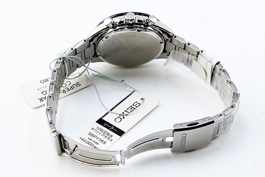 セイコー ソーラークロノ SBPY165 銀文字盤 黒インダイアル ブレス