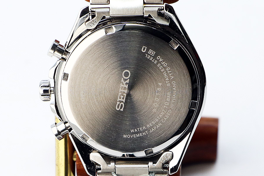セイコー ソーラークロノ SBPY165 銀文字盤 黒インダイアル 裏面拡大