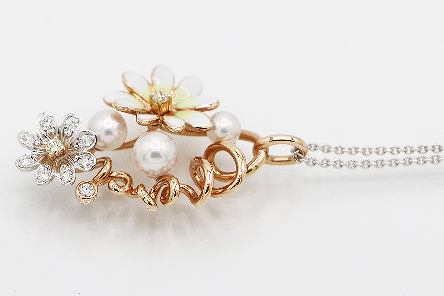 ミキモト K18WG/PG エナメル パール ダイアイリペンダントネックレス 8.80g