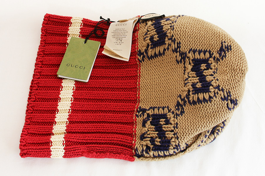 グッチ GGニットキャップ 597636 4G111 ブラウン/レッド 裏返し