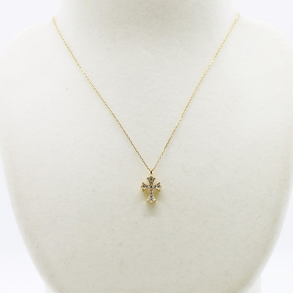 ヴァーゴ Vago K18 アイボリータワー クロス ダイアイリペンダントネックレス 0.11ct 3.50g 装着イメージ