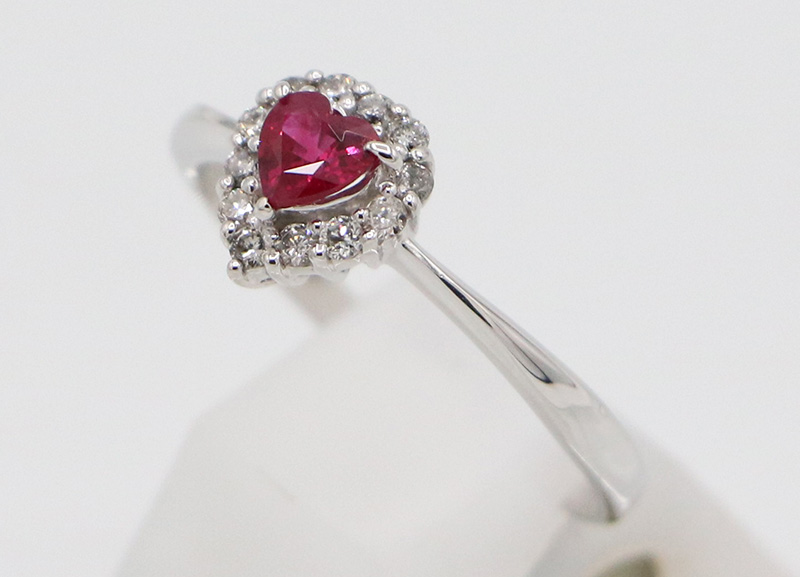 ブランド | - | 品 名 | K18WG ルビーダイアイリリング 0.25ct 0.15ct 1.90g | 素 材 | K18WG | サイズ | #11.0 | 程 度 | A+ リフレッシュジュエリー (新品仕上げ加工) | 付 属 | - | 参考定価 | - | 特徴・備考 | センターに0.25ctのハートシェイプルビーがセッティング。ダイアがハートデザインに取り巻き、エレガントな雰囲気に仕上がっています。ルビーとダイアのコントラストが美しい、デザイン。大人の女性に似合う幸せ「ハート」が、華やかで優しい印象を与えてくれます。 |