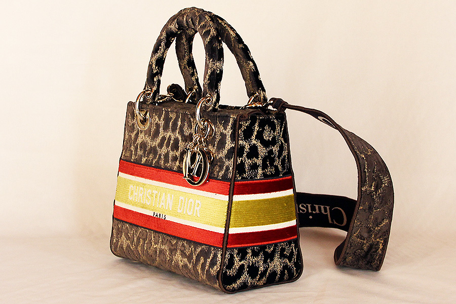 クリスチャンディオール レディディーライト ミディアム レオパード柄 ブラウン/レッド/イエロー [etc-bg240]