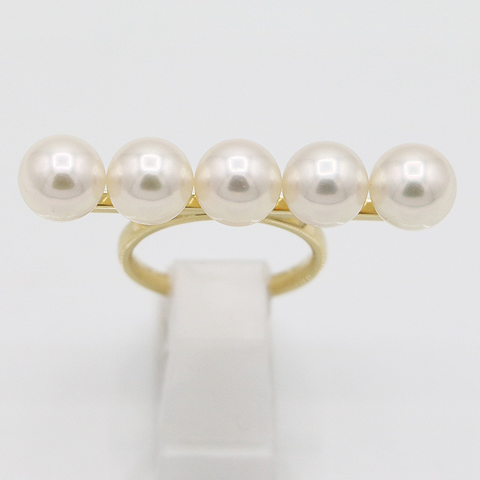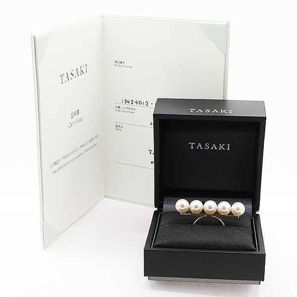 ブランド | タサキ | 品 名 | 750YG バランス シグネチャーリング 8.00mm×5P 9.10g | 素 材 | 750YG | サイズ | #14.0 | 程 度 | A+ 仕上加工済み | 付 属 | 箱、保証書 | 参考定価 | 555,500円(税込) | 特徴・備考 | ニューヨークのファッションデザイナー、タクーン・パニクガルとパートナーシップを組んで誕生したバランスシリーズ。艶やかなパールが直線のバーに並んだデザインで有名なシリーズであり、20代から60代まで幅広い層で人気があります。大粒のパールが使用された大胆で存在感のあるこちらのリングは洗練されたデザインで女性らしさをアップさせてくれます。(R-4398) |