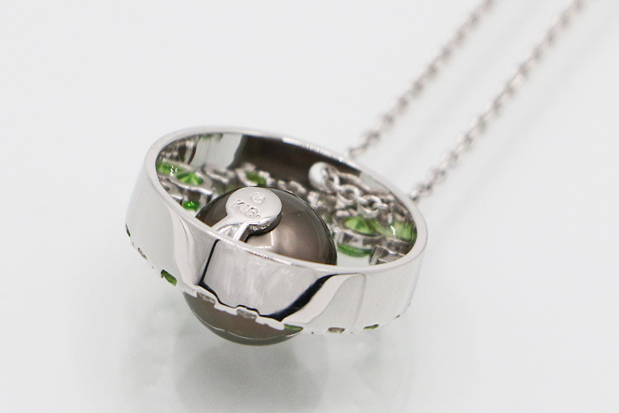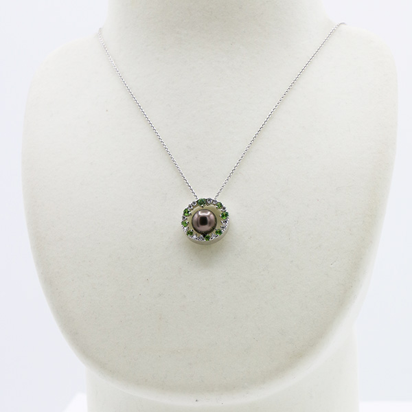ミキモト K18WG ブラックパールデマントイドガーネットダイアイリペンダントネックレス 9.30mm 9.60g