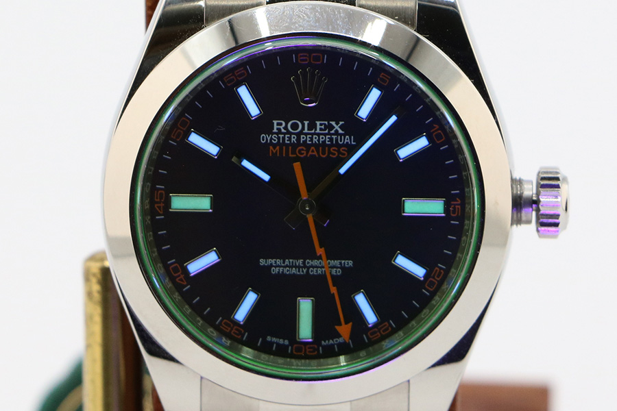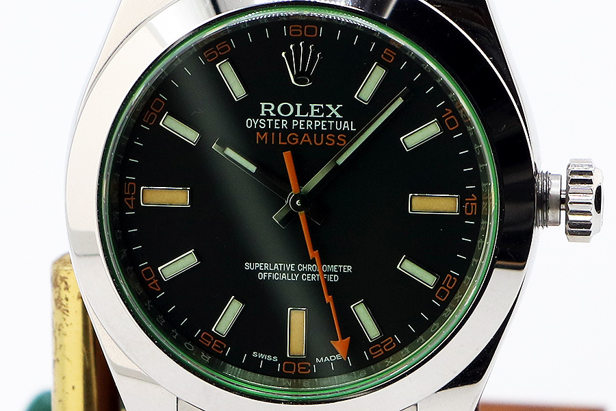ロレックス 116400GV ミルガウス 黒文字盤 グリーンガラス