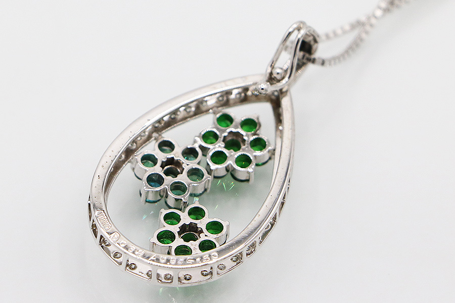 K18WG アレキサンドライトガーネットダイアイリペンダントネックレス 0.94ct 1.60ct 0.38ct 14.20g