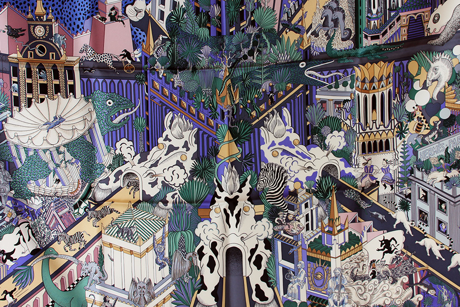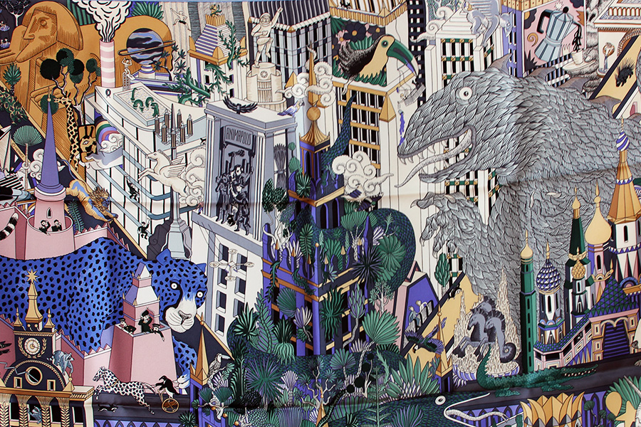 エルメス ANIMAPOLIS カレ90 003275S NA/BLEU/GRIS/VIEUX RO [lv-km076]