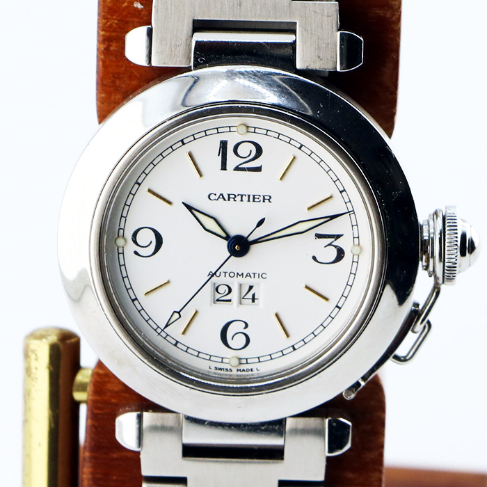 カルティエ パシャC ビックデイト W31044M7 白文字盤