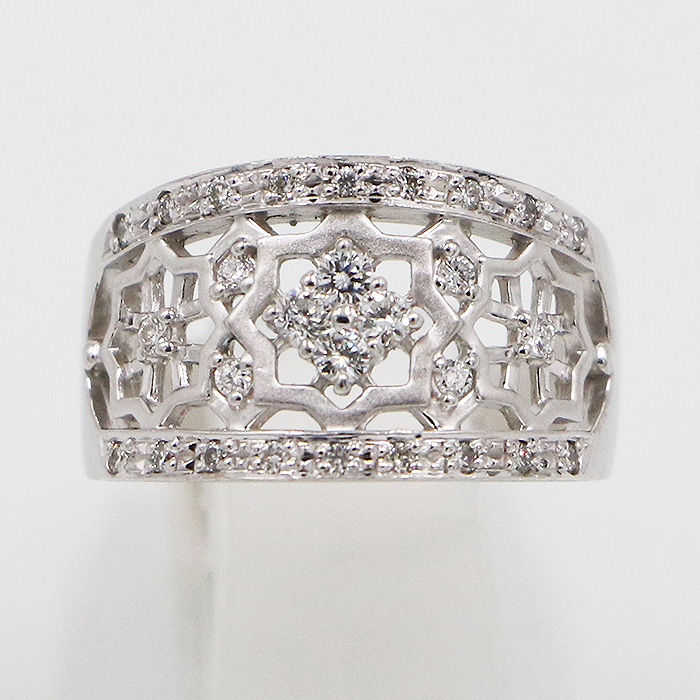 | 付 属 | - | 参考定価 | - | 特徴・備考 | 水野薫子さんは、数々のコンテストでの受賞歴を誇るジュエリーデザイナーです。 ティファニー、ヴァンクリーフ&アーペル等にもデザインを提供しています。透かしのデザインにダイアの眩い輝きが浮かび上がる、エレガントな雰囲気のリング。艶消し加工が落ち着きのある質感を生み出し、シックで上品な印象を演出してくれます。 |