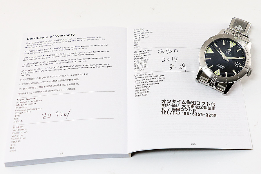 ブランド | ゾディアック | 品 名 | スーパーシーウルフ53 ZO9201 黒文字盤 | 素 材 | SS側 SSベルト | 駆 動 | オートマチック | サイズ | メンズ(ケース径 39mm) | 程 度 | A 日差 +5〜+8 | 付 属 | 箱、販売店証明 2017.08.09 | 参考定価 | 187,000円 | 特徴・備考 | 腕廻り 21cm、駒調整 7mm |