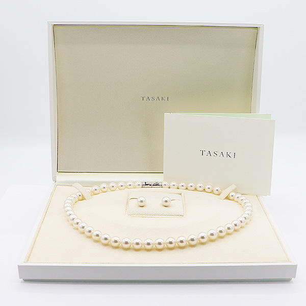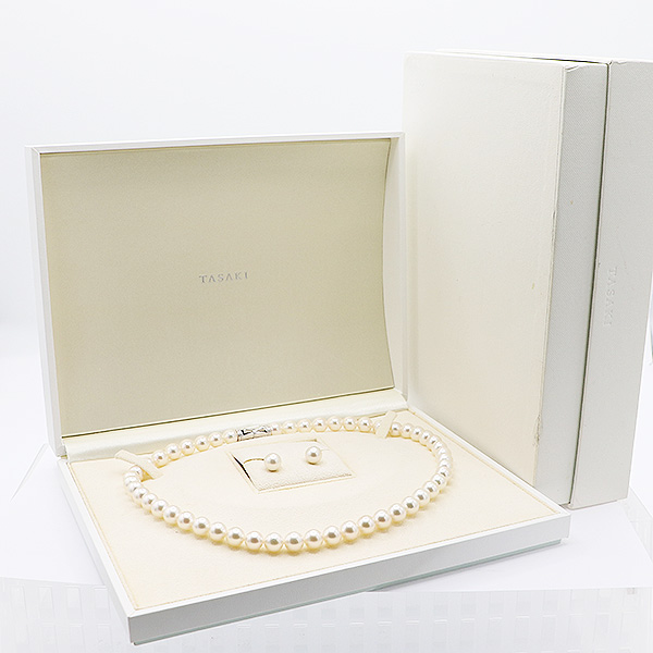 タサキ SV パールネックレス / K18WGイヤリング セット 8.0-8.5mm
